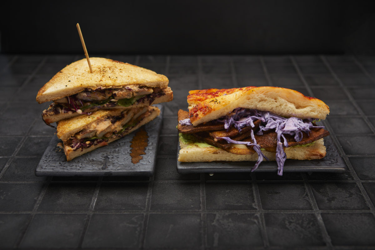 BBQ-Pilzsteak-Sandwich und Focaccia-Sandwich